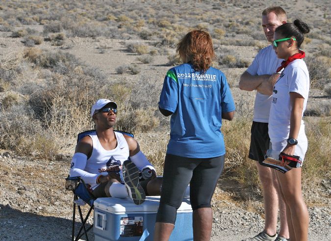 Each of these people had an effect on my life whether it was prolonged or immediate. I selected these individuals because I knew them to be of good character, good athletes, and seemingly compatible personalities. This last component you never knew about because the desert is such a harsh mistress. This race can bring out the best and worst in people as time and efforts wear on. However, I knew that if I were in a less-than-ideal spot, I would hope they would support me. Brad is the change agent that introduced me to ultras back in ’04. We have run several, of varying distances, together since then; he has crewed me before he seemed the perfect fit for the Chief. However, Brad could not escape the clutches of his business to come out so we made do. Trish and I met at our first 100-miler-the Javelina Jundred (JJ100) in ’08; we have kept in touch ever since. To be honest you don’t see many ultrarunners of color. So it is an unspoken norm that we would keep in touch. Kevin was also at the JJ100 and crewed me through the experience. He is sharp as a razor and even-keeled. We lived together and deployed together; he had my undying trust and I knew things were organized a bit better for his presence. May & Huck were there for crew support and emotional support. May has been a solid athlete for the vast majority of her life and has been fringing on the ultra experience with her first one being the Endless Summer 6-Hour Run this year. She’s been an avid supporter since the start of “1in10” awareness campaign for the Semper Fi Fund. Furthermore, I knew that she was reliable; in ’09, she jumped in the last 40 miles of the Grindstone 100-miler and went every step of the way with me—solid! Huck is a retired Marine I met through Rob [Hillery]. Huck has been coming into his own as a solid, ultradistance cyclist and triathlete (multiple Ironman finishes, the Race Across the West, the Race Across AMerica); additionally, Huck has one of the most jovial dispositions I have seen in a Marine. He always had a way to keep the mood light. Lastly, Arylis arrived by way of Alaska. I met him a few years ago with a group known as Team InkNBurn. Arylis is a retired Army Special Forces cat and someone that has yet to “drop the pack”. He is always pushing himself to be better across multiple facets–a family man, an avid outdoorsman, an ultrarunner, and a philanthropist. He was always a positive cat with consistent feedback during our InkNBurn discussions; I told him my BW aspirations many moons ago and he promised that he would crew for me when the time came. The last thing you should know about Arylis is that he is a cyborg; the dude has had some pretty amazing life experiences that would lead most people to become sedentary in their later years. I wanted him on the team. And with the last member, we formed…Team BeastMode—a group of cats willing to surmount adversity while having fun in the process. So now that we had the people, we needed to ensure the vehicles and gear were ready.