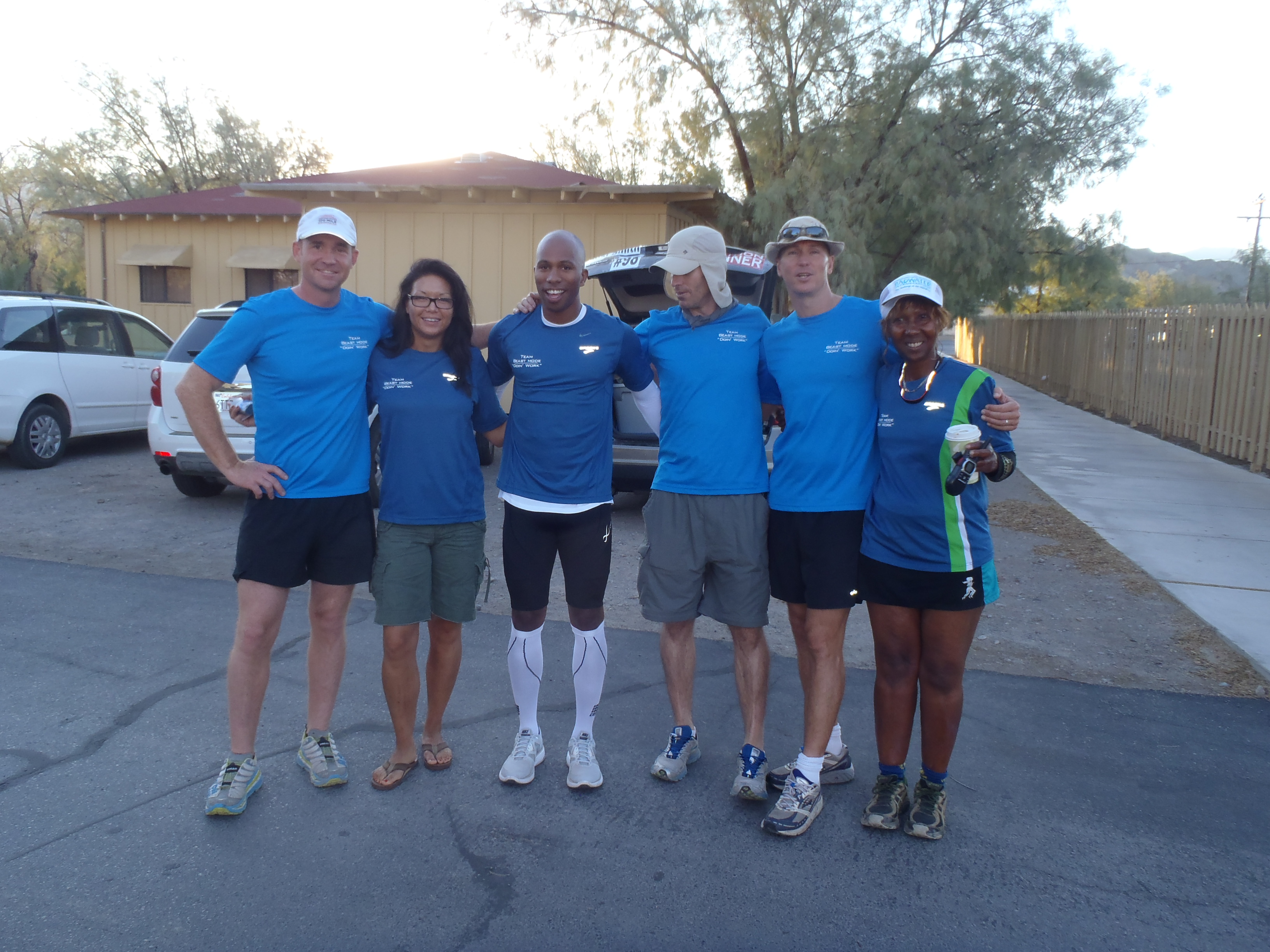 Returning from the Western States Endurance Run (only 3 weeks prior to BW), my focus shifted back to the upcoming run on the sun. Amidst the low tempo at work, short runs at noon, and bouts of fitful sleep, I spent the remaining time working the “L” word: logistics. Travelling light and linking up with the crew in Southern California meant that much of the necessary equipment would have to be acquired, shipped ahead, and consolidated for on-hand preparation. I would have less than a week on the West Coast to make preparations prior to the start of the event. Friday afternoon, prior to race weekend, May, Arylis, and I drove up to Santa Monica to link-up with Tricia, Kevin, and Huck. The next couple of days were spent in prep, relaxation, and more prep. Saturday evening, Rebecca & Chris (ChriBecca) Reinbold treated the crew to dinner at their house. It felt like one of those last meal moments as we sat outside sharing food and tales of the past. The moment went by too soon. Zero-dark-thirty came Sunday morning. We loaded the SUVs and crossed the line of departure headed for the desert. I slept for most of the trip from Trish’s place in Santa Monica to Furnace Creek. My dreams drifted from vistas of the open desert to the trails of Rosaryville to the switchbacks of Devil’s Thumb. I felt an odd sensation of peace that I never felt before events of this nature.